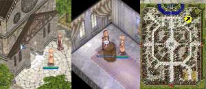Nota: Você tem 5 minutos para passar pelos 3 cômodos. Você pode levar um amigo padre para ajudar com a sala dos zumbis e/ou o teste da sala múmia. Basta fazer o padre falar com o Padre Thomas enquanto o Noviço estiver lá dentro fazendo o teste. O sacerdote deve ter um Rosário[0] em seu inventário para entrar na sala de testes.